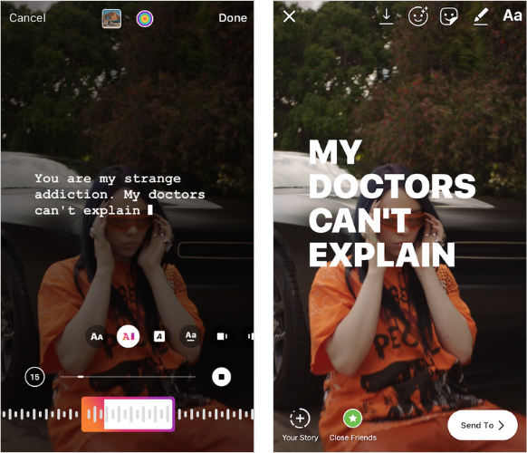 When someone watches your story, they can tap the lyrics to learn more about the artist or listen to the song.