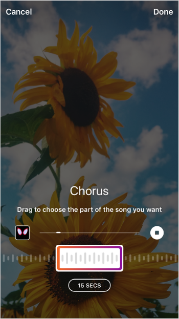 You can also choose how long you want the music clip to play for (the maximum is 15 seconds).